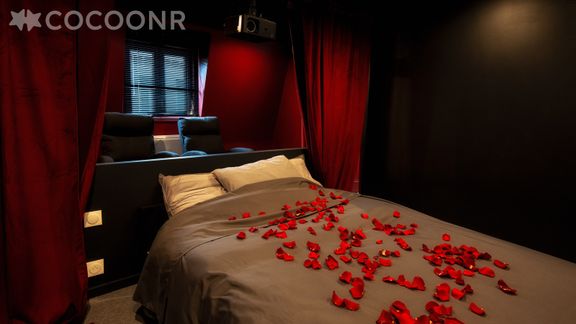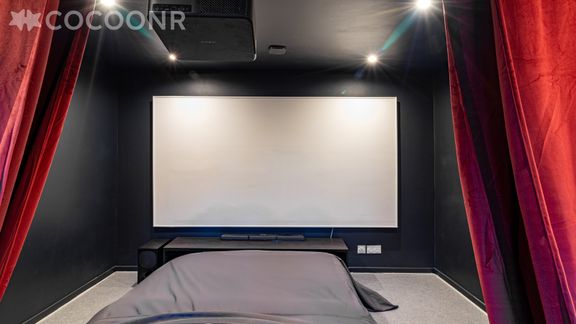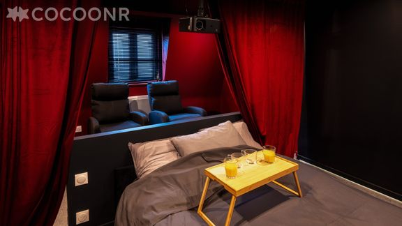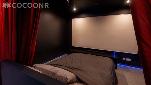 - Un coin nuit avec un lit double (140×190) et un vidéoprojecteur