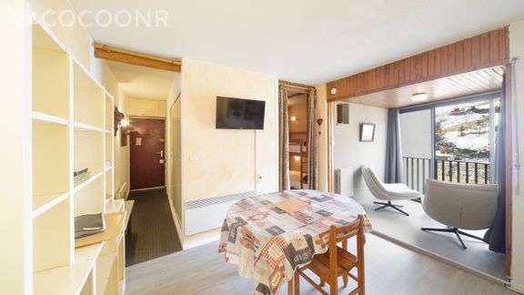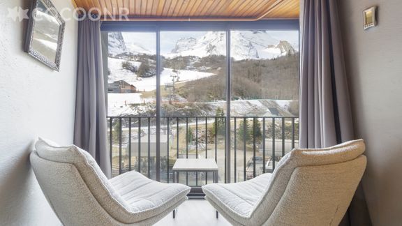 - Un balcon fermé de 4 m², exposé Sud avec vue sur les montagnes et les télécabines
