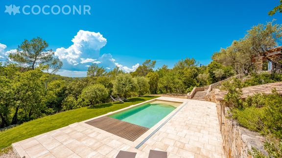 L'agence Cocoonr/Book&Pay vous propose à la location, à Entrecasteaux, cette charmante maison climatisée avec piscine, d’une superficie de 125 m² et pouvant accueillir jusqu’à 8 voyageurs. Elle est composée d’une jolie pièce à vivre de 47 m², d'une cuisine équipée, de quatre belles chambres, de trois salles de bain (avec douche et baignoire) et vous pourrez profiter d’un jardin d’environ 5 045 m². Les draps et les serviettes sont inclus. Nous n’attendons plus que vous !