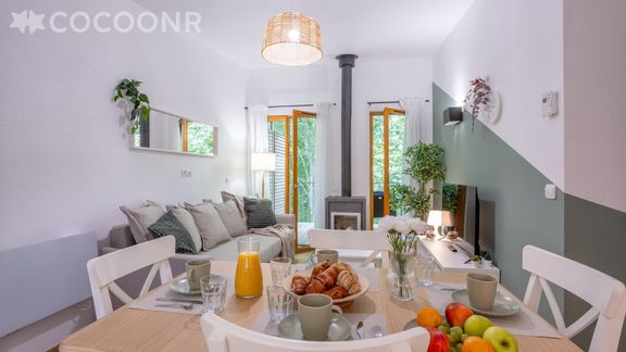 Équipements complémentaires : enceinte Bluetooth, un adaptateur électrique universel, une plaque à induction mobile supplémentaire, un combiné grill/plancha électrique, un mini-four de 12 litres, trois jeux de société, produits écologiques Écolabel dans la salle de bain et le cottage, un cadeau de bienvenue.
