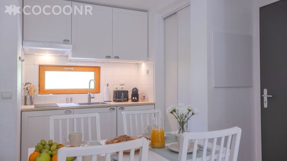 - Une cuisine entièrement équipée avec four, micro-ondes, grille-pain, lave-vaisselle, plaques de cuisson...