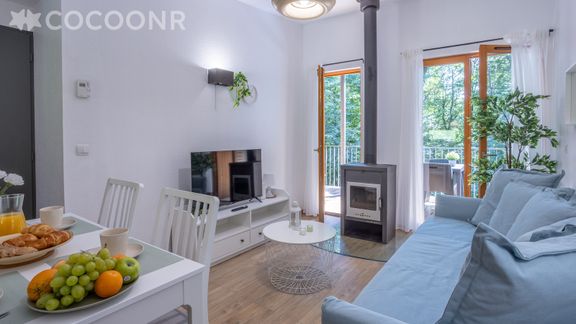 - Un séjour de 15 m² avec canapé-lit double, TV et coin repas