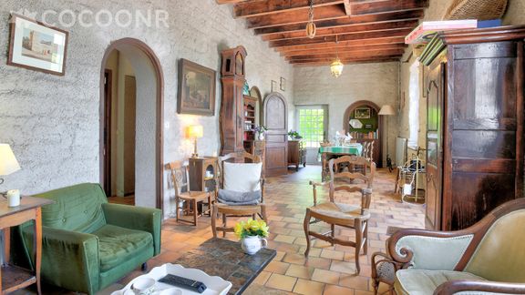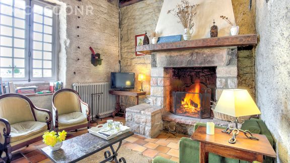 - Une pièce de vie de 30 m² avec cheminée (bois fourni), une télévision, un coin salon et un coin repas