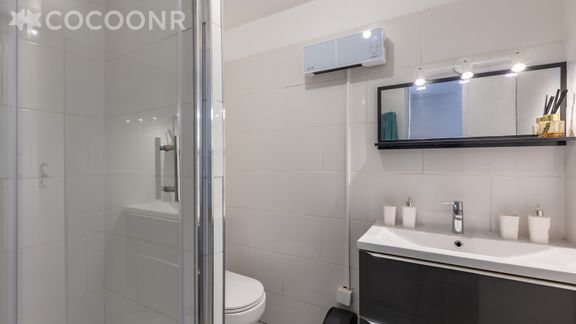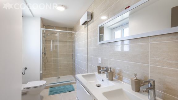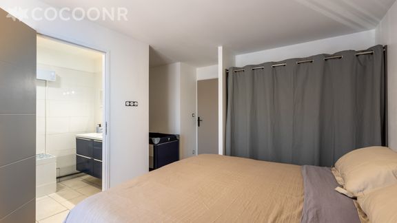 - Chambre 2 : un lit queen size (160x200) avec salle d'eau attenante comprenant douche, WC