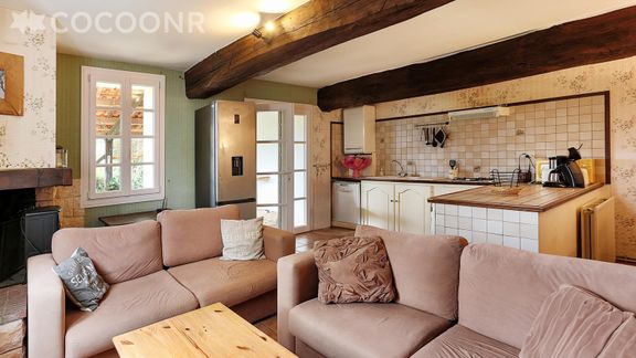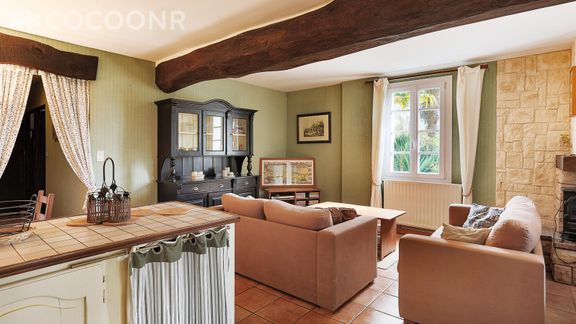 - Une pièce de vie de 34 m² avec TV, canapés et espace repas