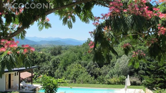 L'agence Cocoonr/Book&Pay vous propose à la location, à Figarol, ce charmant appartement de 81 m² avec piscine, et pouvant accueillir jusqu’à 4 voyageurs. Il est composé d’une jolie pièce à vivre de 34 m², d'une cuisine équipée, de deux belles chambres, d'une salle de bain et vous pourrez profiter d’un jardin d’environ 4 100 m² avec une jolie vue sur les Pyrénées.