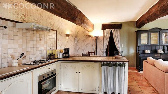 - Une cuisine ouverte, équipée avec notamment : bouilloire électrique, four, four à micro-ondes, grille-pain, lave-vaisselle, plaques de cuisson...