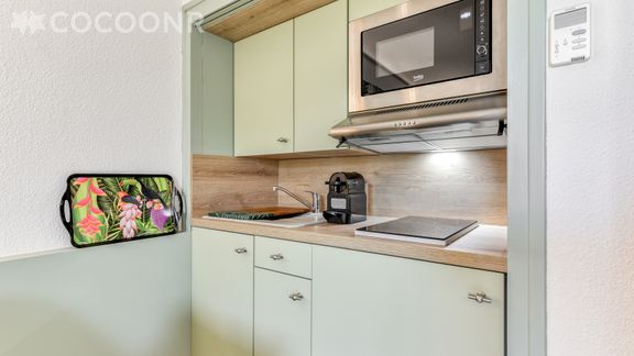 - Une cuisine équipée avec notamment : four à micro-ondes, plaques de cuisson...