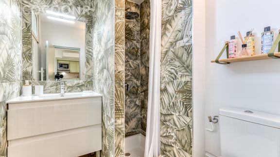 - Une salle d'eau avec douche, WC