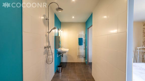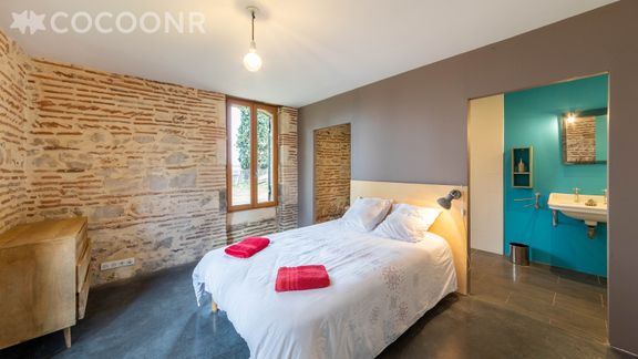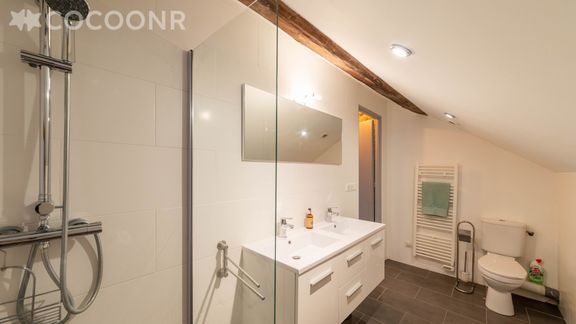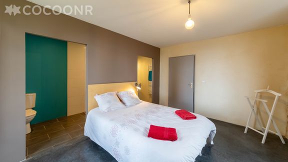 - Chambre 1 : un lit double (140×190) et une salle d'eau attenante avec douche et WC.