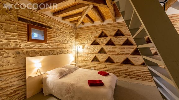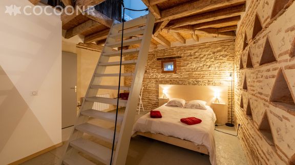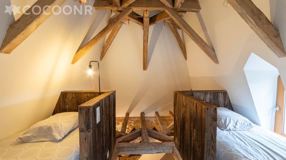 - Escalier raide pour l'accès à la chambre avec deux lits simples.