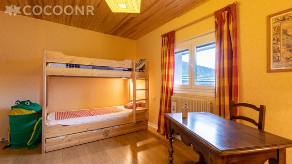 - Chambre 2 : chambre de 15 m² avec lits superposés et lit gigogne (4 couchages au total). Rangements. Idéale pour les enfants.