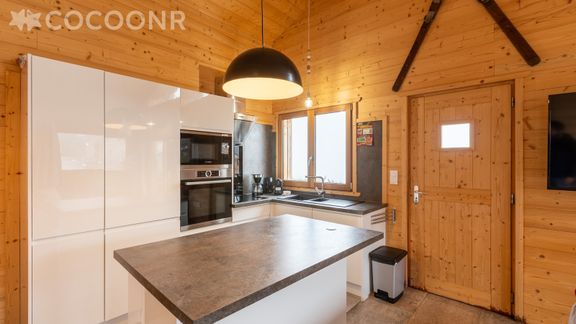 - Une cuisine équipée avec notamment : bouilloire électrique, four, four à micro-ondes, grille-pain, lave-vaisselle, plaques de cuisson...