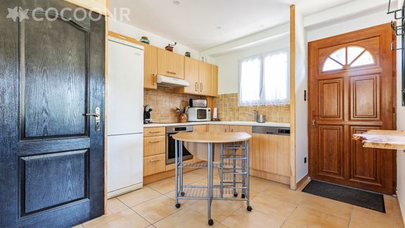 - Une cuisine équipée avec notamment : four, four à micro-ondes, grille-pain, lave-vaisselle, plaques de cuisson, cafetière à dosettes Senseo et cafetière Dolce gusto, appareil à raclette et fondue...