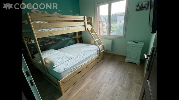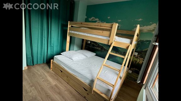 - Chambre 3 : lits superposés avec en bas un lit double, en haut un lit simple et un lit simple supplémentaire.