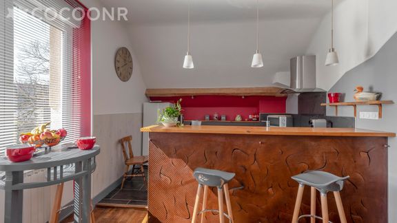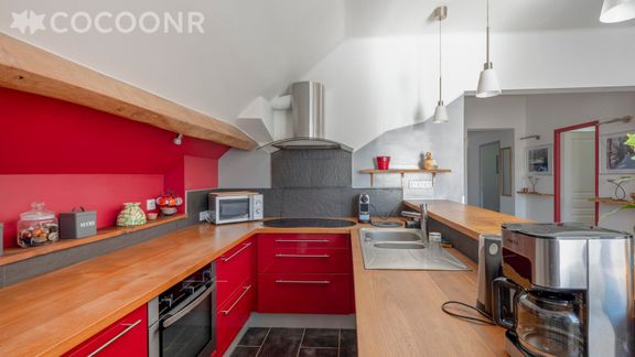 - Cuisine ouverte sur le salon et intégralement équipée : lave-vaisselle, four, réfrigérateur, plaques de cuisson, micro-ondes, grille-pain, cafetière, bouilloire, vaisselle et couverts...