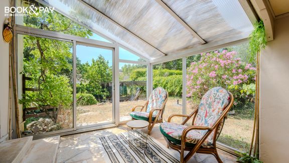 L'agence Cocoonr/Bookandpay vous propose à la location, à Garéoult, cette maison climatisée avec piscine, d’une superficie de 100 m² et pouvant accueillir jusqu’à 9 voyageurs. Elle se compose de deux pièces à vivre, de deux cuisines équipées, de trois chambres, de deux salles d'eau (avec douches) et vous pourrez profiter d’un jardin d’environ 1 500 m². Wifi (fibre optique) inclus, nous n’attendons plus que vous !