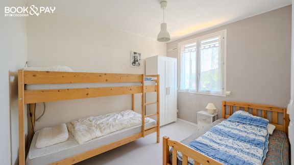 - Chambre 3 : avec un lit simple (90×190) et un lit superposé (2 couchages)