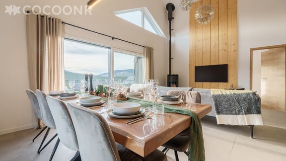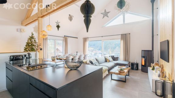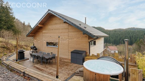 L'agence Cocoonr/Book&Pay vous propose à la location, à Gérardmer, cette charmante maison avec jacuzzi et vue montagne, d’une superficie de 120 m² et pouvant accueillir jusqu’à 8 voyageurs. Elle est composée d’une jolie pièce à vivre de 45 m² avec poêle à granulés, d'une cuisine équipée, de quatre belles chambres, de deux salles d'eau et vous pourrez profiter d’un jardin d’environ 1 200 m². Wifi (fibre optique), draps et serviettes inclus, nous n’attendons plus que vous !