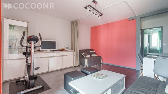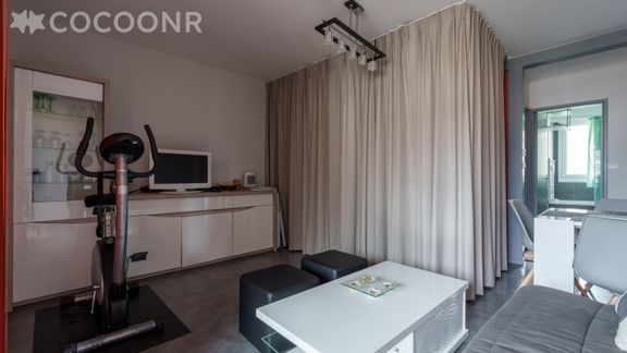 - Une pièce de vie de 20 m² avec canapé-lit , TV, coin repas et espace nuit avec un canapé BZ qu'il est possible de fermer grâce à un rideau.