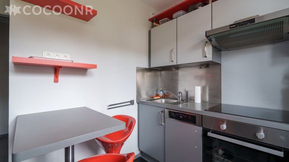 - Une cuisine équipée avec notamment : bouilloire électrique, four, four à micro-ondes, grille-pain, lave-vaisselle, plaques de cuisson...