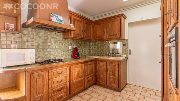 - Une cuisine équipée avec notamment : bouilloire électrique, four, four à micro-ondes, grille-pain, plaques de cuisson (à gaz).