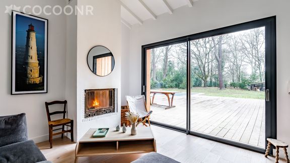 - Une pièce de vie de 40 m² avec cheminée (bois disponible en supplément)
