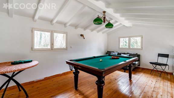 - A la mezzanine : un espace de jeu avec une table de billard
