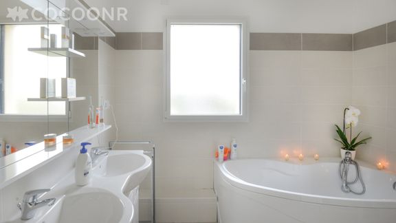 - Une salle de bain avec baignoire