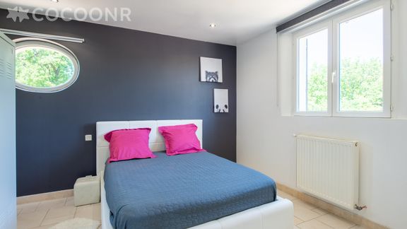 - Chambre 4 avec lit double (140 cm x 190 cm), TV, salle d'eau et WC. La chambre 4 se trouve dans une dépendance attenante à la maison.