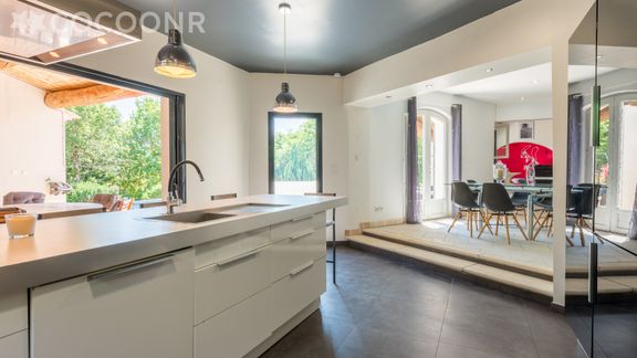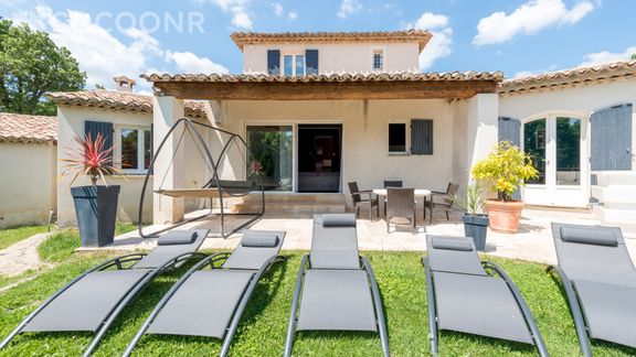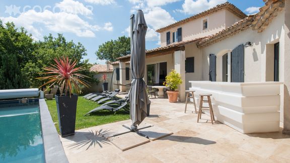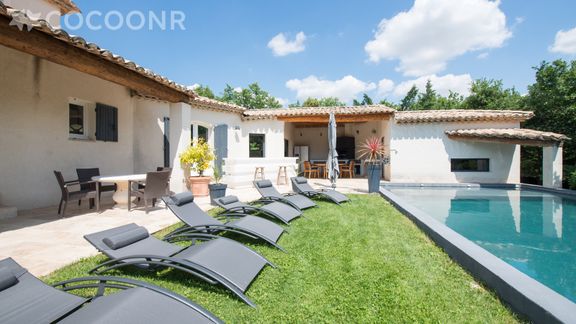 Ce bien moderne de 180 m² pouvant accueillir jusqu'à 8 voyageurs se compose d'un grand espace de vie, cuisine moderne et entièrement équipée, 4 chambres dont une suite parentale avec salle d'eau, 2 salles d'eau, WC séparés. Cuisine d'été, jardin et piscine privée. Draps et serviettes sur demande en supplément.