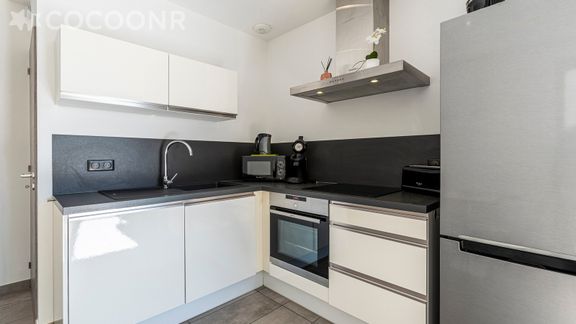 - Une cuisine équipée avec notamment : bouilloire électrique, four, four à micro-ondes, grille-pain, lave-vaisselle, plaques de cuisson...