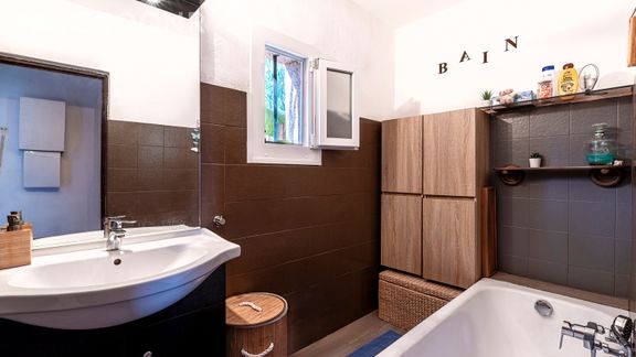 - Une salle de bain avec baignoire