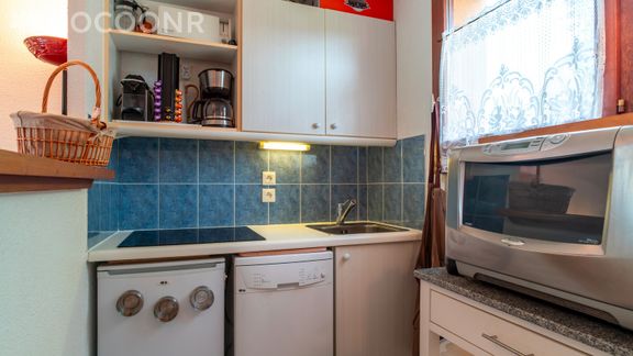 - Une kitchenette ouverte, équipée avec notamment : bouilloire électrique, four, four à micro-ondes, grille-pain, lave-vaisselle, plaques de cuisson...