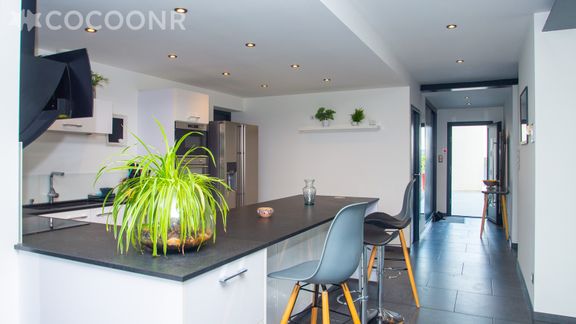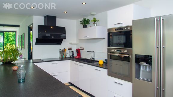 - Une cuisine ouverte équipée avec notamment : four, four à micro-ondes, grille-pain, lave-vaisselle, plaques de cuisson...