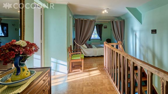 - Sur le palier fermée par des rideaux, un lit double (140×190)