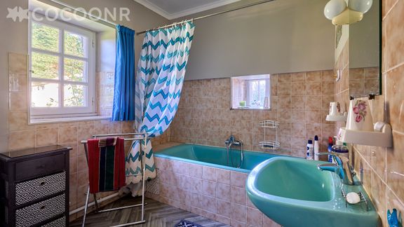 - Une salle de bain avec baignoire