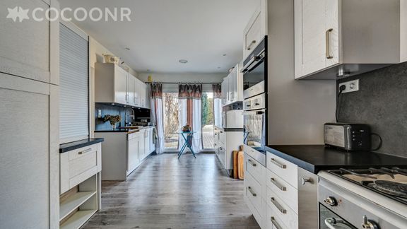 - Une cuisine équipée avec notamment : bouilloire électrique, four, four à micro-ondes, grille-pain, lave-vaisselle, plaques de cuisson...