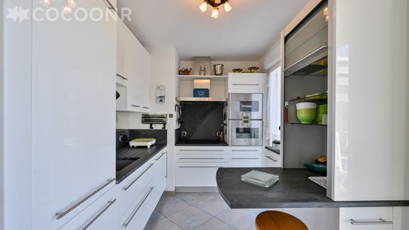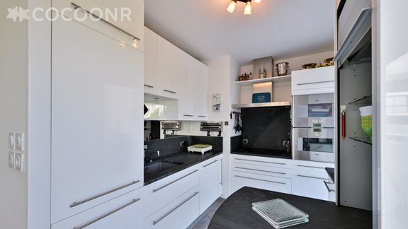 - Une cuisine équipée avec notamment : bouilloire électrique, four, four à micro-ondes, grille-pain, lave-vaisselle, plaques de cuisson...
