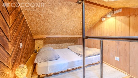 - Une jolie petite mezzanine ouverte équipée d'un lit double (140x190) avec velux sur les nuits étoilées.