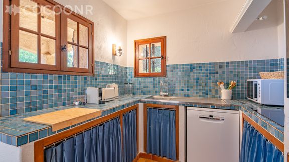 - Une cuisine équipée avec notamment : bouilloire électrique, four, four à micro-ondes, grille-pain, lave-vaisselle, plaques de cuisson...