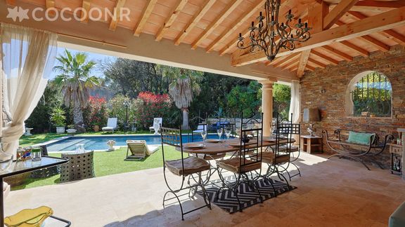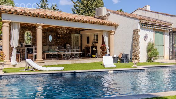 L'agence Cocoonr/Book&Pay vous propose à la location, à La Croix-Valmer, cette maison de charme (Rez De Chaussée) avec piscine et poolhouse, d’une superficie de 102 m² et pouvant accueillir jusqu’à 7 voyageurs. Il est composé d’une pièce à vivre de 25 m², d'une cuisine équipée, de trois chambres, trois salles de bain (avec douche et baignoire) et vous pourrez profiter d’un jardin d’environ 1 200 m². Wifi (fibre optique), draps et serviettes inclus, nous n’attendons plus que vous !