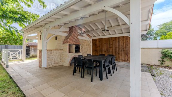 - Un beau jardin clos de 460 m² faisant le tour de la maison, avec espace cuisine d'été et mobilier de jardin