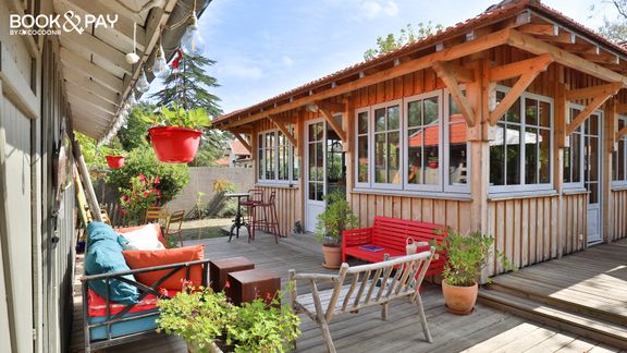 L'agence Cocoonr/Book&Pay vous propose à la location, à Cazaux, cette charmante maison moderne arcachonnaise et son extension en bois, d’une superficie de 90 m² et pouvant accueillir jusqu’à 6 voyageurs. Elle est composée d’une jolie pièce à vivre de 30 m² (avec poêle à bois), d'une cuisine ouverte équipée, de trois belles chambres, d'une salle de bain (avec douche) et vous pourrez profiter d’un jardin d’environ 250 m². Wifi (fibre optique), nous n’attendons plus que vous !