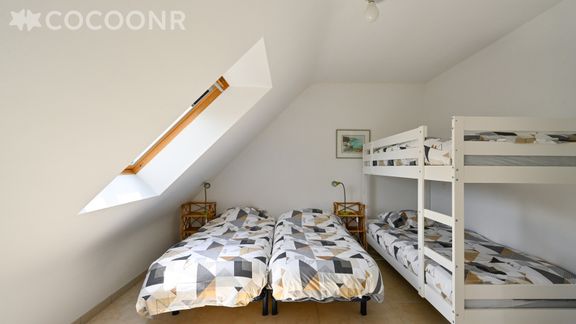 - Chambre 3  : deux lits simples pouvant former un lit double (lit double 160x190) et un lit superposé