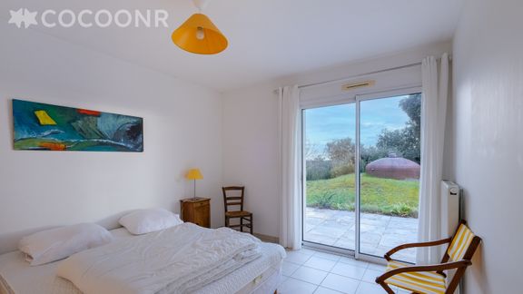 - Chambre 1 : deux lits simples pouvant former un lit double (lit queen-size 160x200), offrant un accès direct à la terrasse et une salle d'eau privative (avec douche et WC)