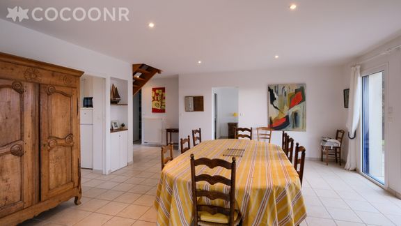 L'agence Cocoonr/Book&Pay vous propose à la location, cette belle maison d’une superficie de 180 m² pouvant accueillir jusqu’à 15 voyageurs. Elle est composée d’une pièce à vivre de 70 m², d'une cuisine équipée, de six chambres, de trois salles d'eau (avec douche) et d'une salle de bain (avec baignoire). Cette maison offre une grande terrasse de 80 m² exposée sud-ouest surplombant la Turballe, ainsi qu’un jardin d’environ 600 m². Wifi (fibre optique) inclus, TV avec 35 chaines, jeux de cartes. Nous n’attendons plus que vous !