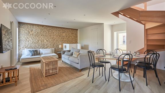 - Une pièce de vie de 27 m² avec TV, Wifi (fibre optique), un canapé lit et un coin repas
