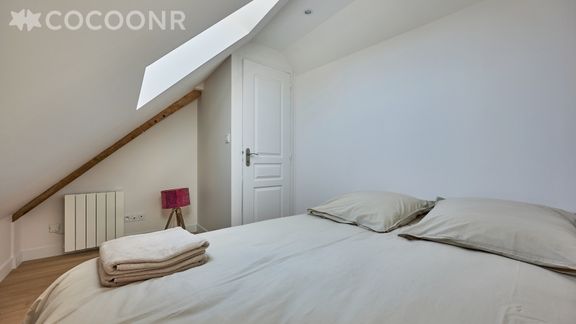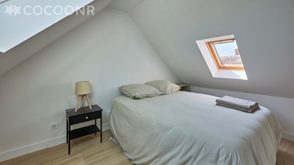 - Chambre 1 et 2 (mansardées) : un lit double (140×190)