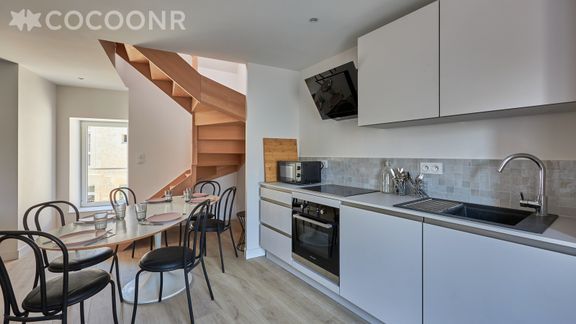 - Une cuisine équipée avec notamment : four, four à micro-ondes, lave-vaisselle, plaques de cuisson...
